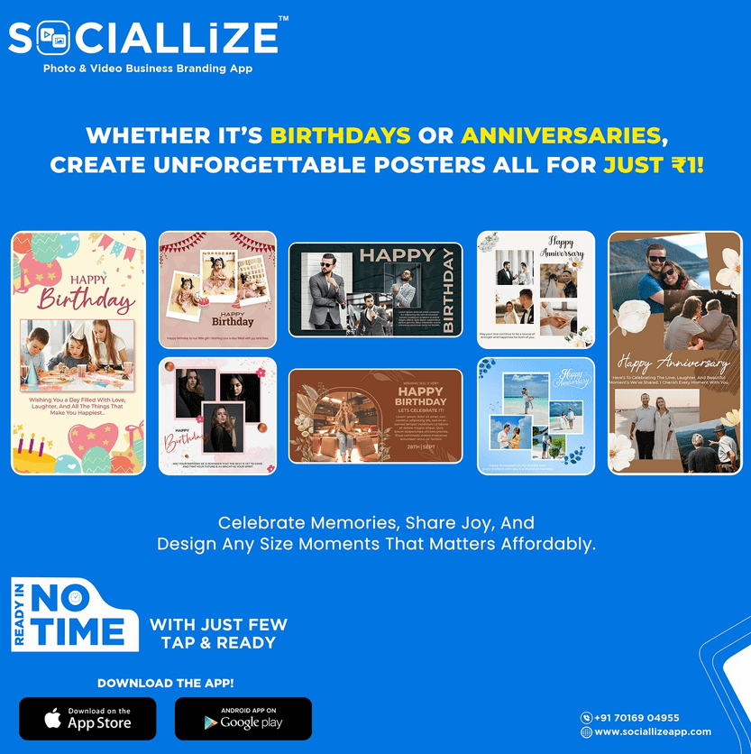#HappyBirthday #HappyAnniversary #PosterDesignApp #SocialMediaTemplates #CreateIn1Minute #DigitalGreetings #SociallizeApp #SungoldMediaApp #BestPosterDesigningApp